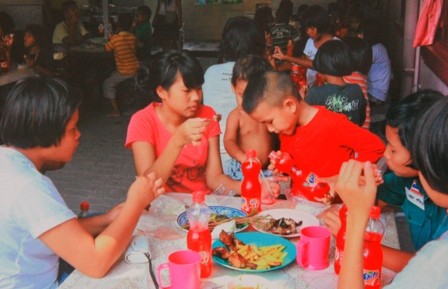 Bei diesem Fest wurde den Kinder ein großer Wunsch erfüllt und noch immer reden sie davon. Was für uns normal ist, ist für sie fast unerreichbar und so gab es statt Reis einmal Pommes!