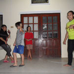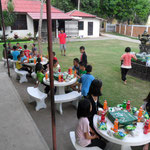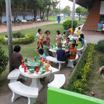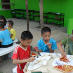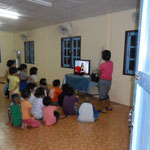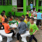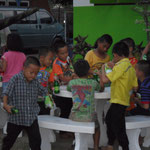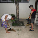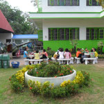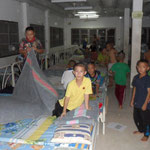 Während des Tages kommen Lehrer, die die Kinder unterrichten und am Abend kümmert sich Frau Saranya, zusammen mit dem Wächter, um die 100 Kinder.