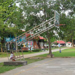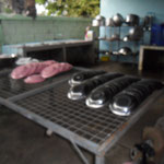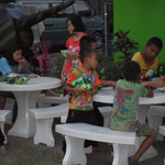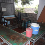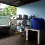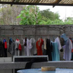Sie haben eine Waschplatz mit einigen alten Maschinen und eine Schule. Diese besteht aus Klassenzimmern und einem grossen Grasfeld, auf dem die Kinder Fussball spielen und toben können.