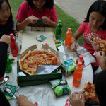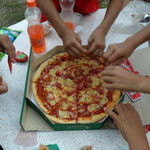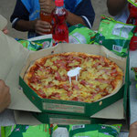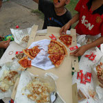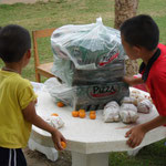 Die Bilder zeigen das Waisenhaus, Lebensmittel und Geräte die mit den Spenden gekauft wurden und das Pizzafest, dass für die Kinder veranstaltet wurde.